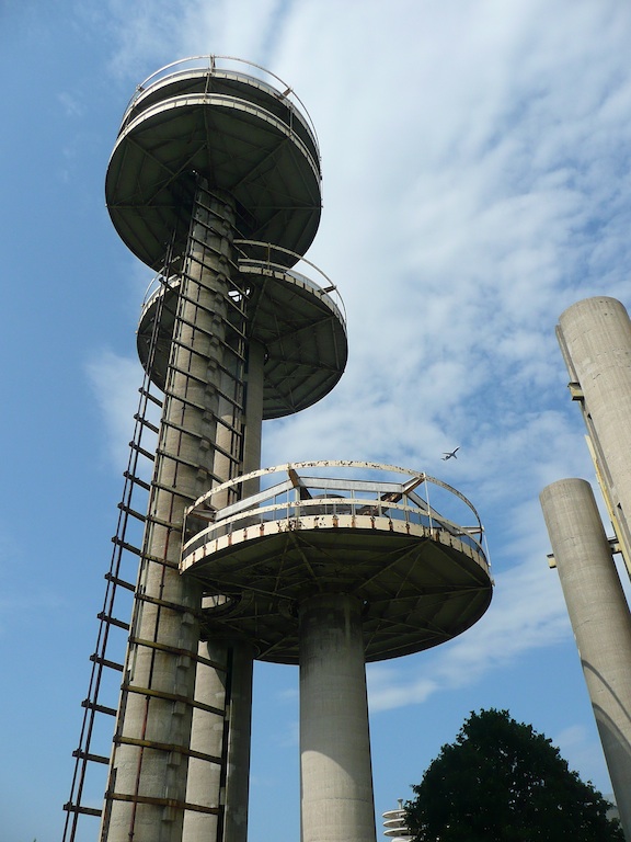 I'll be honest–I'd never heard of Flushing Meadows until Sarah mentioned it, and since I'd only ever been to Queens once, many years ago, to see a taping of the short-lived Madigan Men at Kaufman Astoria Studios, I was way out of my comfort zone, but willing to check it out anyway. The reason she wanted to go? Flushing Meadows is home to what little's left of the wonderland built in 1939 and again in 1964 for the New York World's Fairs, which is the rough equivalent to the remnants of the Crystal Palace in London.